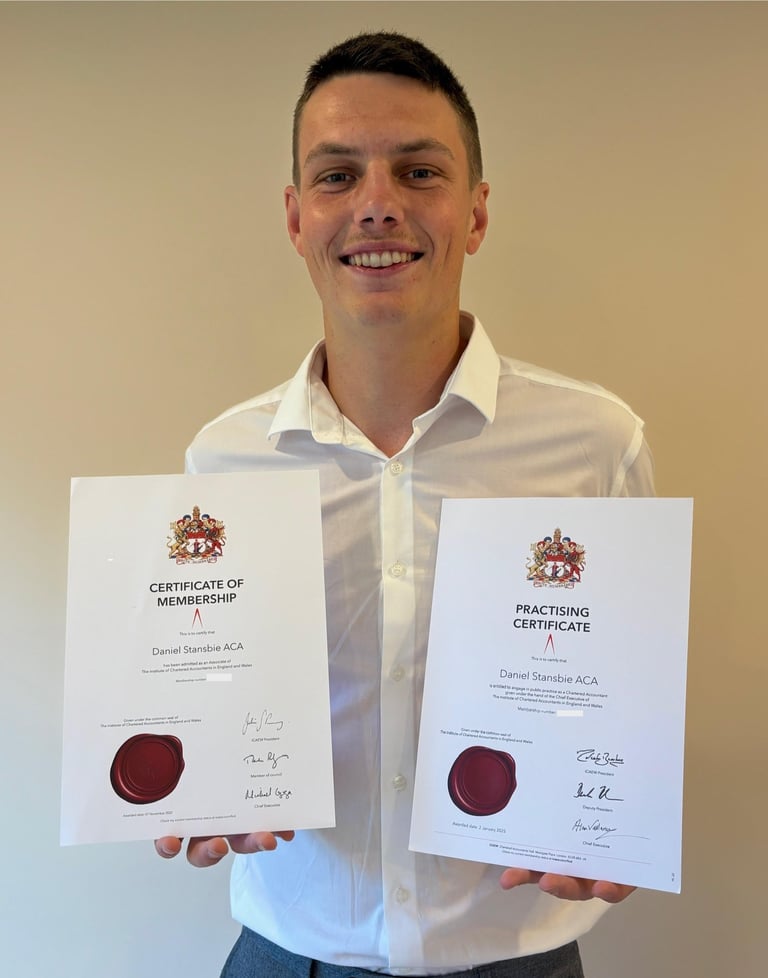 My name is Daniel Stansbie the founder of Stansbie and Co, Chartered Accountants. My journey into accountancy began at school, where maths quickly became my favourite subject. That led me to choose maths, further maths and economics at A-level. I knew early on that university wasn't the right path for me, as I was keen to get straight into the workplace (and avoid the student debt!).